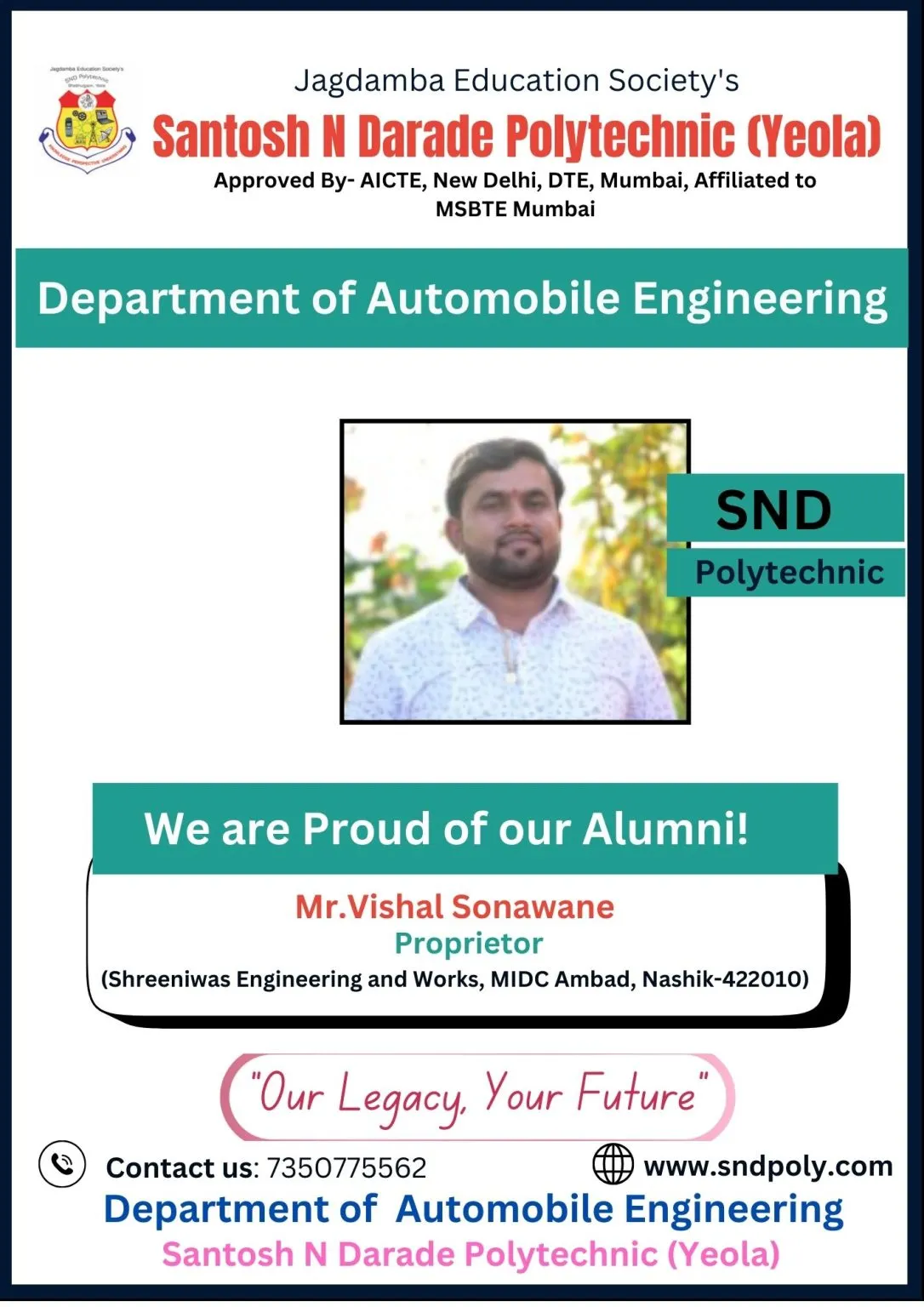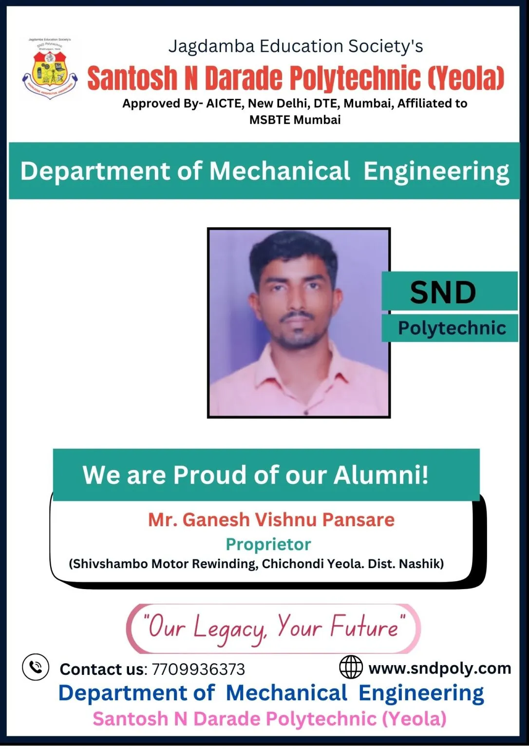Santosh N Darade Polytechnic (Yeola) Tal.Yeola Pincode 423 401 District Nashik, Maharashtra.